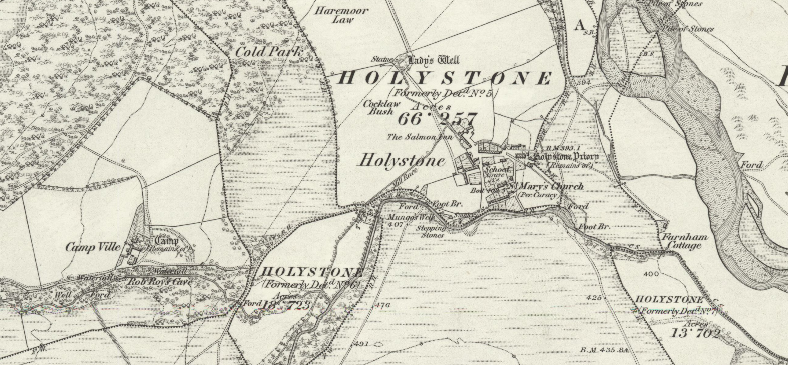 Extract from the 1866 Ordnance Survey map, showing Holystone and surroundings